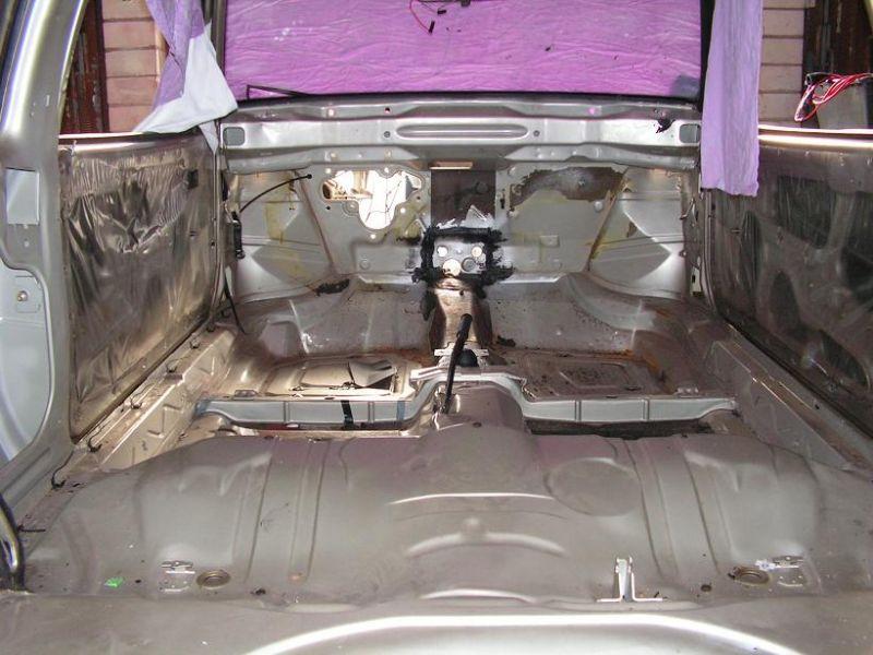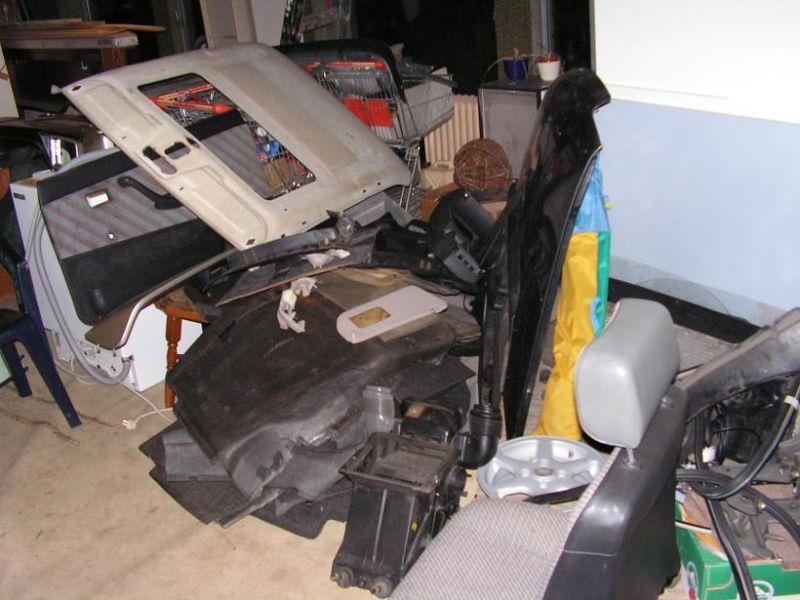 Da darf nur ich oder mein kollege Borsty dran schrauben!Nun mal der ganzer rotz den ich da rausgeholt habe:  und jetzt komm ich mal zur Schadensaufnahme (das was der micha verpfuscht hatte):    Zudem hatte er den Wagen immer ohne antriebswellen bewegt also sind die Radlager vorne hin und er hatte die Radläufe gebördelt ohne den Lack zu erwärmen also ist der lack abgeplatzt. Ich weiß aber noch nicht ob der wagen die Farbe behalten soll oder ob ich ihn in Magmarot Lacken lassen soll.