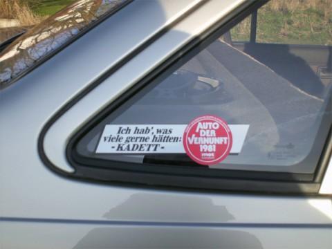 Er hatte unter anderem Autos wie Kabett B, Kadett C GTE, Ascona A, Manta A GTE und als meine Wenigkeit in die Familie kam, gabs einen Kadett D Kombi. Er meinte sich erinnern zu können, dass er die Aufkleber damals zum D bekommen hat. Allerdings war der Aufkleber Anfang der 80er wohl nicht besonders "cool" weswegen sie nie Verwendung fanden - Bis Jetzt