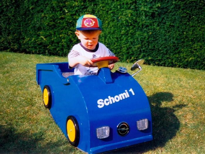 Mein Sohn tritt in meine Fußstapfen: Er fuhr vor 14 Jahren auch schon die Automarke mit dem Blitz.