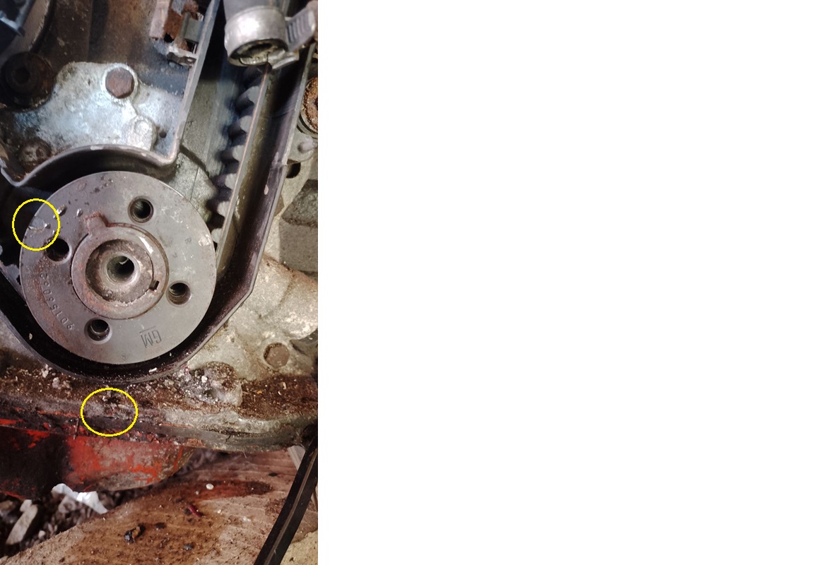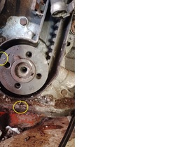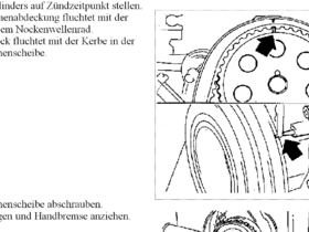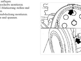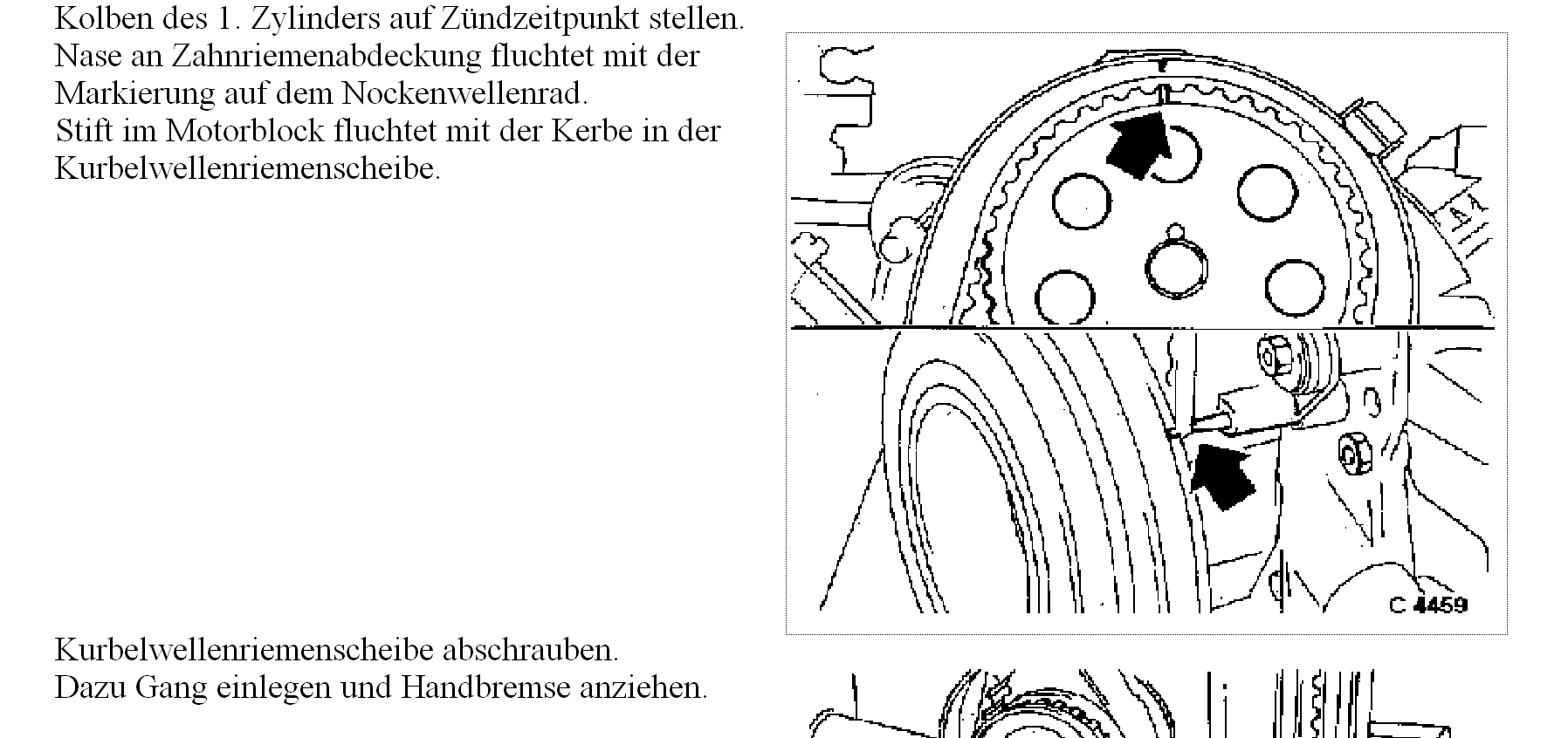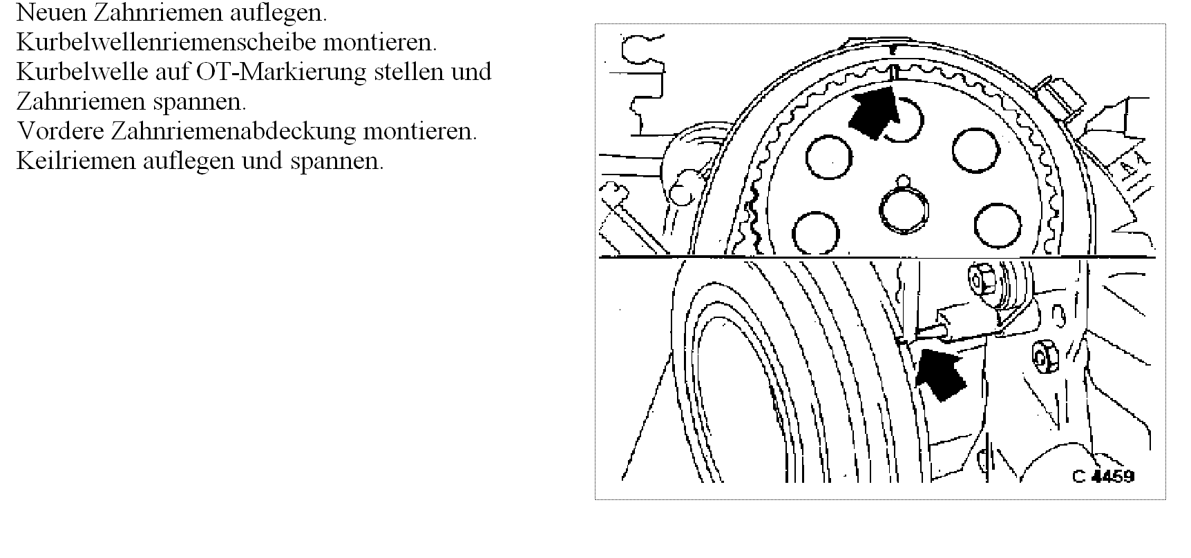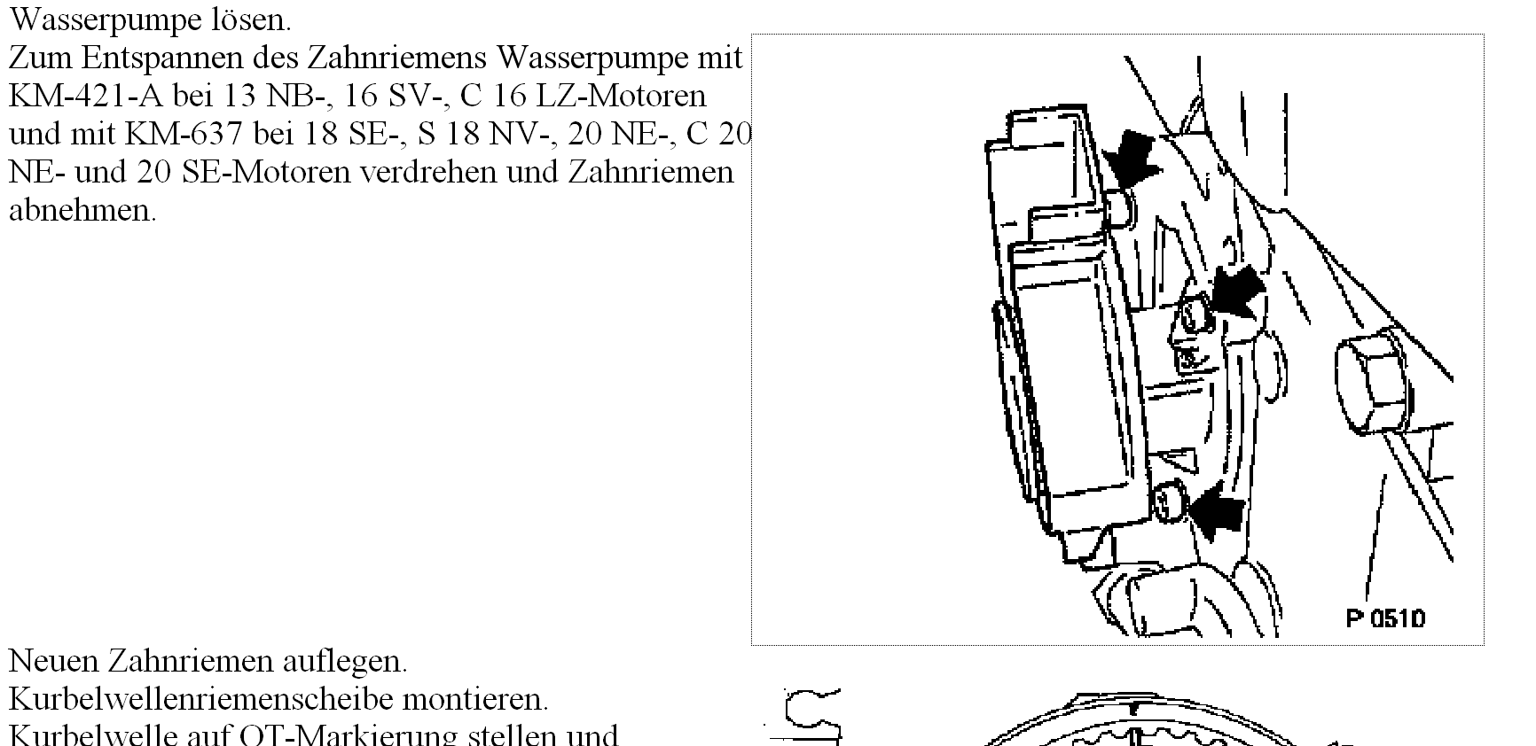 Immer die Markierung am Riemenrad verwenden und mit der Markierung an der Ölpumpe ausrichten. -