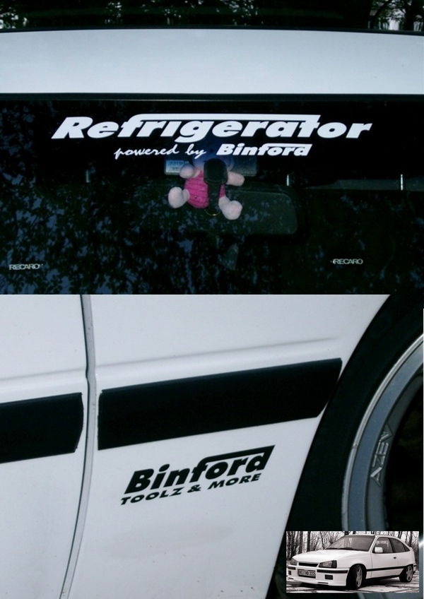 Die Aufkleber sitzten auf der Windschutzscheibe bzw. auf den Kotflügeln und auf der Heckscheibe prangert immer noch der große 'Winterwagen'-Aufkleber