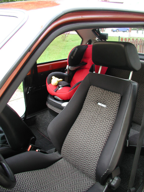 Zum Schluss hab ich nur noch auspropiert ob moderne Kindersitze gut in alten Kadetten aussehen. Hier ein Bild davon.