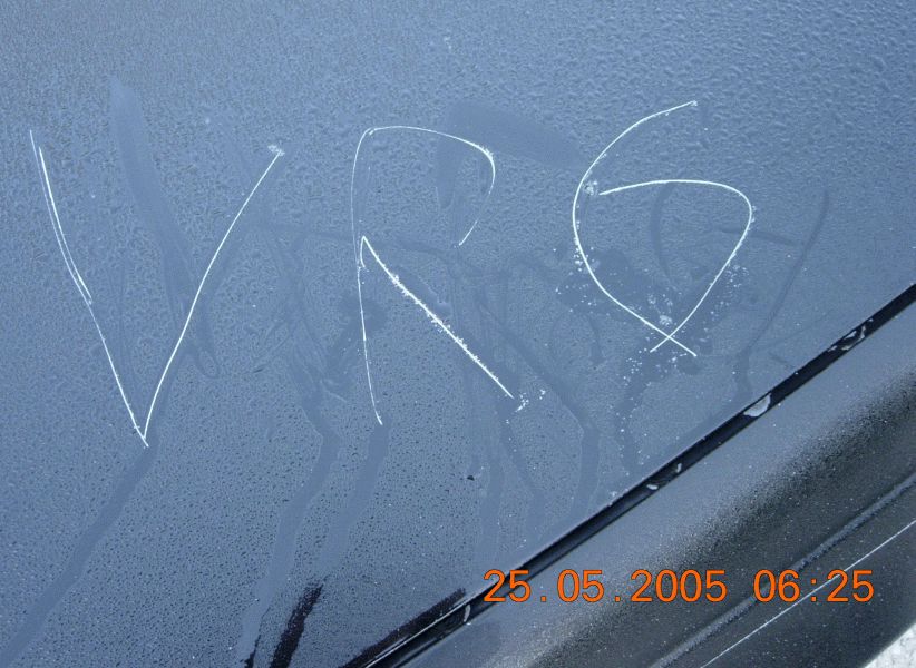 Also bei einem Frisch lackiertem oder nicht frisch lackirtem Auto das wäre mir noch schnuppe davon ab heißt das nicht gleich das es auch ein VW fahrer gewesen sein muss.