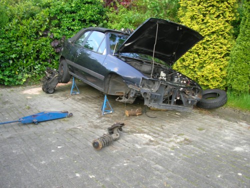 Aber dieses Cab war schon zu fertig. Zwar nur 140Tkm gelaufen, aber Durchrostungen selbst im Kofferraumboden und ein Verdeck, das schon einige Male geflickt worden war. Dementsprechend feucht ist es auch über den Winter geworden. Die Türen aufzuheben lohnt sich auch nicht mehr, da ist ebenfalls Rost an den Innenfalzen.