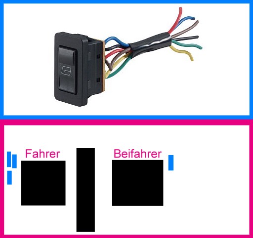 die Schalter sind ja in der Mittelkonsole. Ich will eben nun die Schalter an die Türe machen, einen für Fahrerscheibe, einen für Beifahrerscheibe und einen fürs Dach.