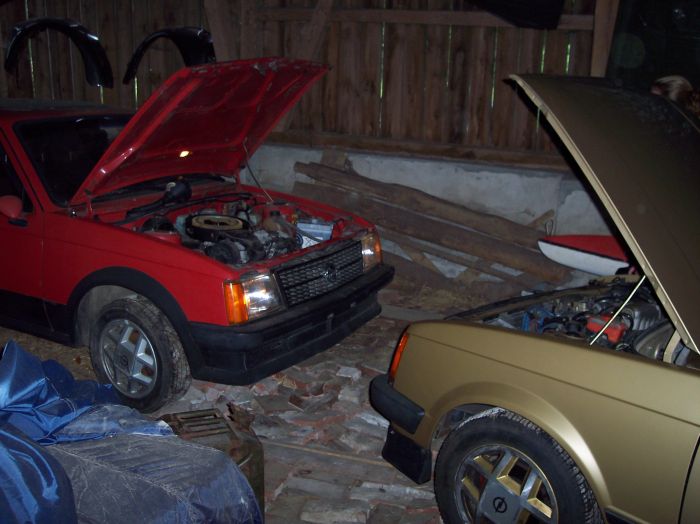 Hallo Leute , war Samstag erstmal bei Nico ein wenig Klönschnack und die Ganzen D-Kadetts ansehen die bei ihm stehen. Sind dann zu so einen Bauernhof gefahren wo Nico sein roten SR steht , welcher 10 oder 12 Jahre nur stand , bis Nico ihn gekauft und mit den Trailer zu den Bauerhof gebracht hat.Ich muß sagen ..einfach geil das Auto fast kein Rost nur der Lack ausgeblichen (oder war das nur 12 Jahre alter Dreck) und das beste..alles Orginal. Wie gesagt angesehen , und ich kam dann auf die Glorreiche Idee , los Nico den erwecken wir jetzt zum Leben du hols Spritleitung Benzin u.s.w.. Ich hab in der Zeit mit Nicos Freundin Reifen gewechselt , Sitze eingebaut halt alles schon mal Vorbereitet. Als Nico nach kurzer Zeit wieder da war gings Los , Batterie umgebaut, Zündfunke ? Ja ist da , Zündkerzen? Ja sind jetzt Sauber , Öl? ja ist Neu , Spritleitung frei ?, ja Nico Pustet gerade, Tank ist Gott sei Dank auch Leer. Sprit? ist Neu drin, O.K. erstmal den Motor drehen lassen , damit auch ja überall Öl hinkommt. So dann Zündung... alles klar auf gehts Los Nico Starte mal. Orgel orgel orgel nix...Mh Nico Ist doch klar der Sprit muß ja auch erstmal durch die ganze Leitung . Nico saug mal den Srit an , mach ich digger. Saug saug Prust spuk fluch :D :D :D Ich hab mich halb tot gelacht Nico mit raushängender Zunge .....haf jeman waffer für mif, fprit fmeckt nif fo guf ...... . Naja nachdem das dann geklärt war So Nico reinsetzen noch mal Orgel orgel , alles klar jetzt auf die Brutale Art , Vergaser Frei , Sprit beim Orgeln reinsröpfeln , und was soll ich sagen er kam . Nebelwerfer angeschmissen kann man auch sagen . Ein paar Fehlzündungen ganz am Anfang und schon lief der 1,6er S seidenweich !!!!!!! So Nico ,raus aus der Scheune auf gehts und schön warm Laufen lassen. Der SR Lief schön Ruhig vor sich hin , kein Qualm nix , astreine Verbrennung. Wir haben uns gefreut wie kleine Jungs .Alles in allem hat es vielleicht ne Std gedauert. Hier mal das erste Bild wie der SR in der Scheune steht, bzw. stand