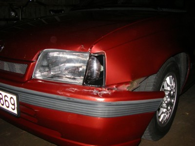 Bilanz: Blinker (die schwarzen MTS von Sir-Lars, die ich mir erst heute Mittag eingebaut habe), Kotflügel, Haube, Frisco-Schürze kaputt. Scheinwerfer ist noch ganz, hat aber wahrscheinlich das Frontblech seitlich nach hinten gedrückt.