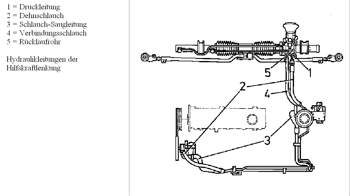 Von der Pumpe vorne am Träger unter dem Kühler zum Servobehälter und dann oben zu den Zuleitungen vom Lenkgetriebe.