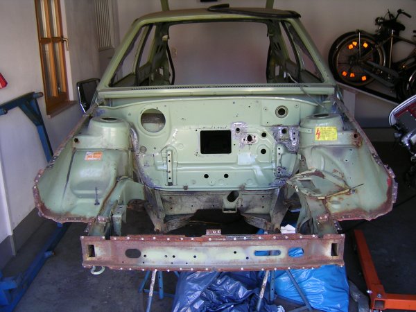 Die Batterie kommt in den Innenraum - aber da die Radeinbauten auch noch erneuert werden spar ich mir jetzt das Abbohren und schneid später das ganze Teil raus.
