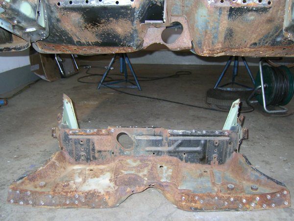 Möglich, daß das die Henkersmalzeit der Maus war. Der Vorderachsträger wirft auf der Innenseite ein paar häßlich Beulen - ich befürcht halt, daß sich der Rost zwischen die Bleche eingenistet hat. Morgen werd ich mal messen, obs starke Unterschiede zwischen D und E Vorderachsträger gibt. Wenns überhaupt nicht paßt, muß ich halt den Alten aufarbeiten. Füßraumblech muß auch neu - besonders da, wo es mitm Vorderachsträger zusammengepunktet war.