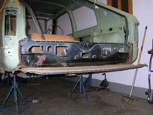 Meine Erbse wird immer leichter - der Unterboden ist jetzt vom PVC Schutz und Wachs befreit (die orginale Grundierung ist noch drauf und leider auch Rost). Hab mal das Heckblech abgebohrt - komisch alle D´s rosten an den gleichen Stellen. :D Bevor es weiter geht, muß ich mir noch ein paar Schweißpunktfräser/bohrer besorgen.