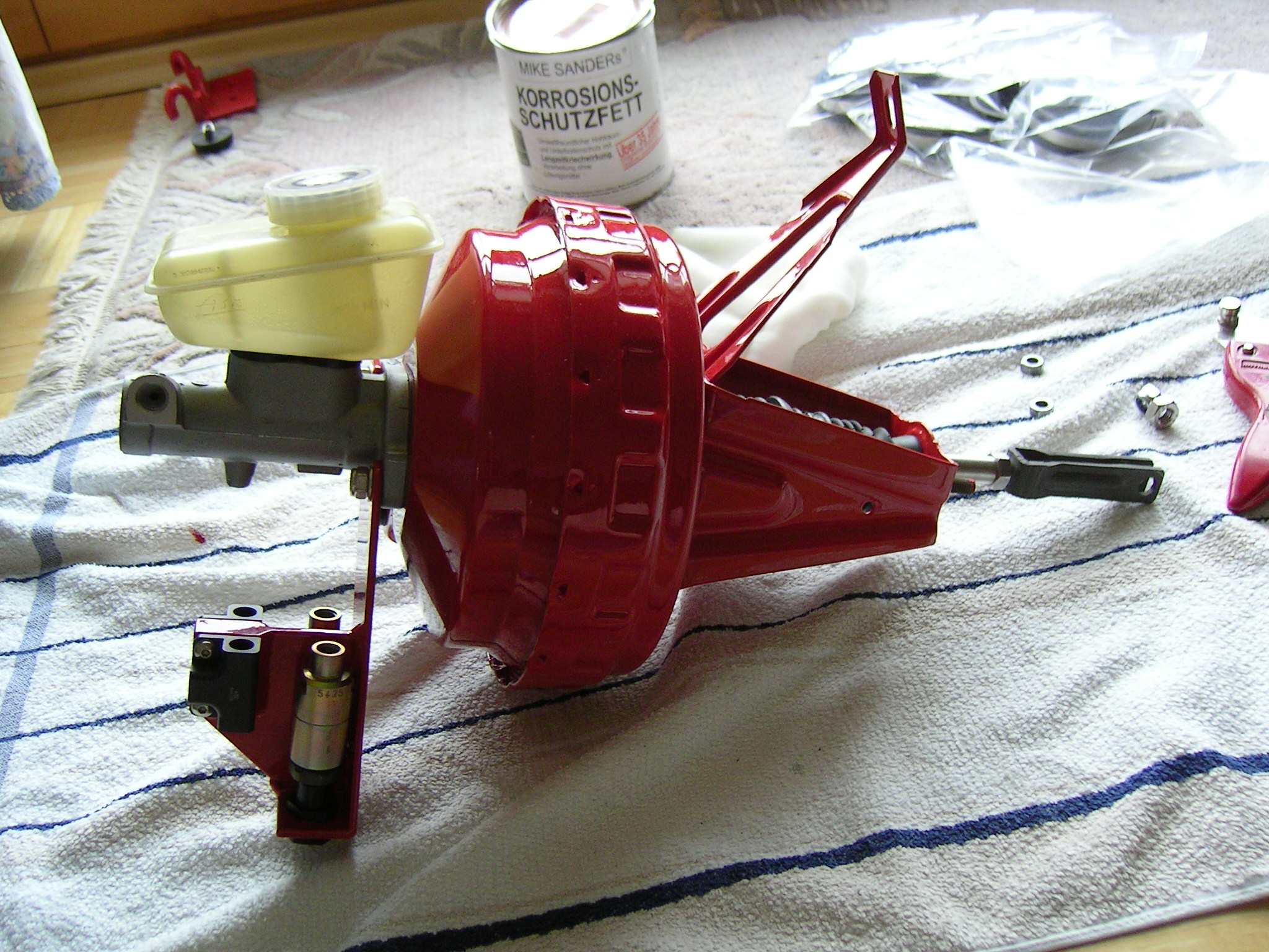Die Halter sind pulverbeschichtet, nur der BKV ist lackiert (bei 180 °C schmilzt sonst eventuell innen drin was). Der BKV ist selber lackiert, haut bei mir leider nicht immer auf Anhieb hin - zu viel Farbe und dann beim trocknen Läufer.