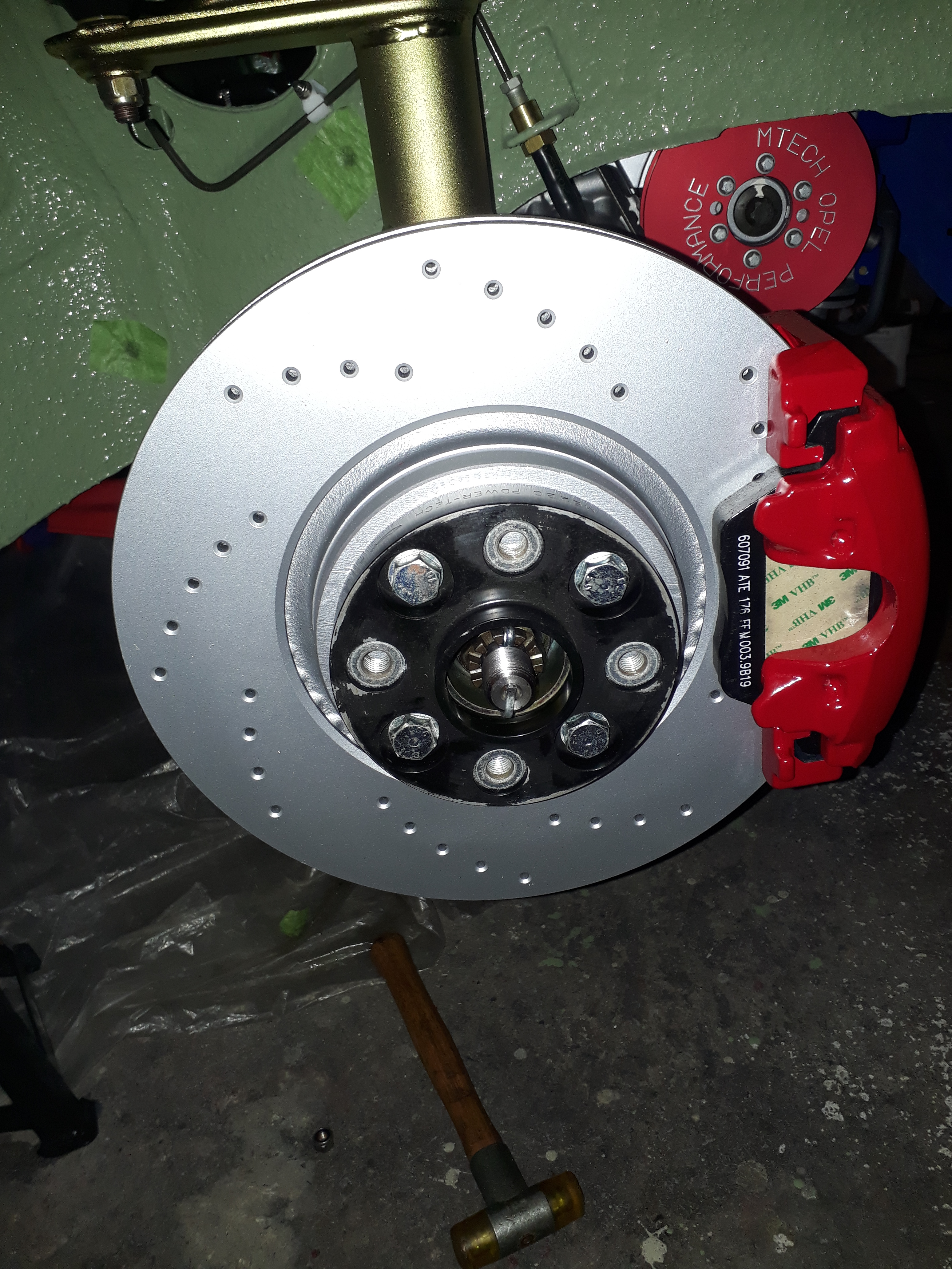 Das ist keine Grundierung, die der Bremsscheibenhersteller drauf gesprüht hat, sondern Aluspray von Würth, den ich da schön satt drauf gesprüht hab. Wenn das Auto mal läuft und vielleicht auch bremst, schau ich mir die Beläge mal an, wie weit die Farbe den Belag zugeklebt hat.Das Aluspray auf den Bremsflächen kannst Du aber auch völlig rückstandslos mit Säure wieder abbeizen. Habe ich so mit Zinkstaubfarbe auch bereits gehandhabt.