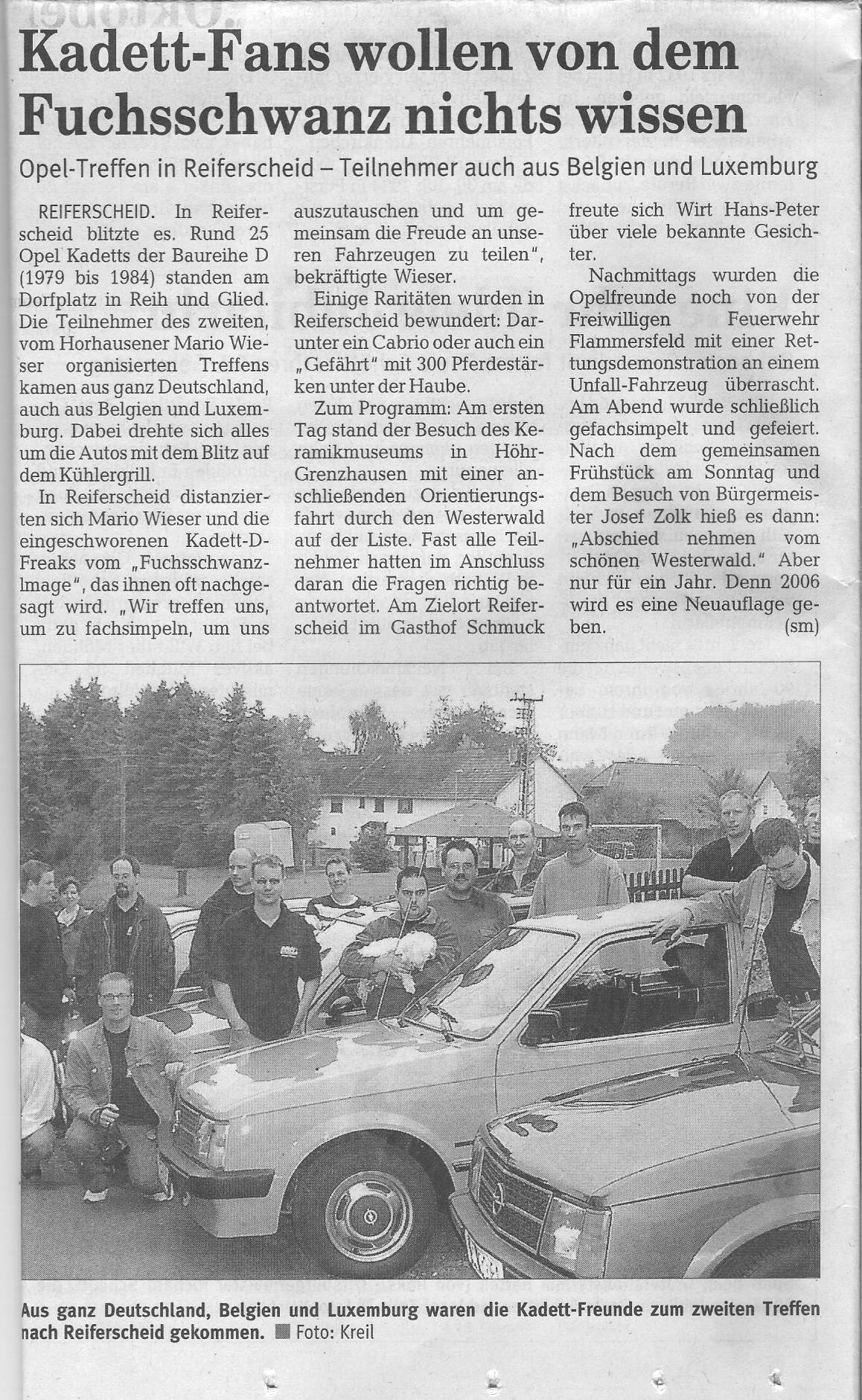 Vielen Dank für die Infos. Wie bereits in der Vergangenheit wird das folgende Kadett D Treffen wieder an dem Wochenende der 33. Kalenderwoche stattfinden. Dieser Termin habe ich bereits an alle möglichen Stellen publiziert, habe mittlerweile 12 Fahrzeuganmeldungen und den Termin jetzt auf Verdacht rückgängig zu machen, weil irgendwo im Bundesgebiet ein anderes Treffen stattfindet, steht in keinem Verhältnis zum Aufwand.