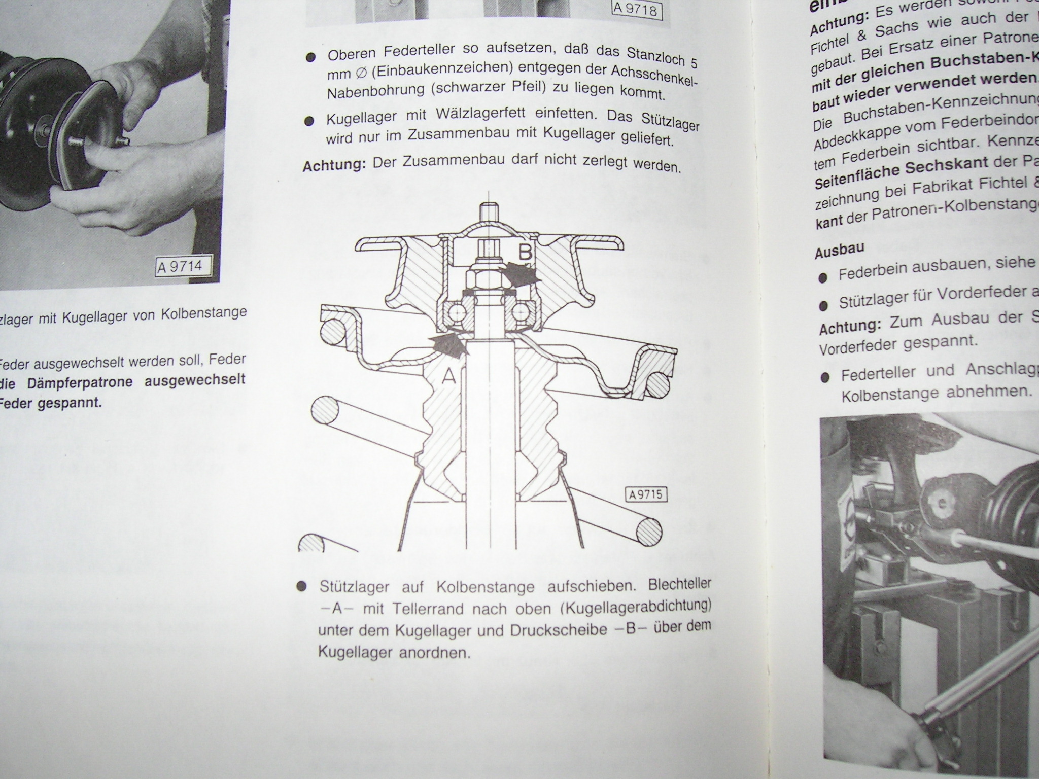 Oberen Federteller so aufsetzen, daß das Stanzloch 5mm (Einbaukennzeichen)m entgegen der Achsschenkelnabenbohriung( schwarzer Pfeil) zu liegen kommt.Das bild welches du braüchtest liegt darüber.