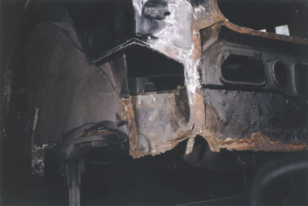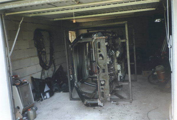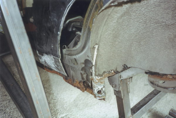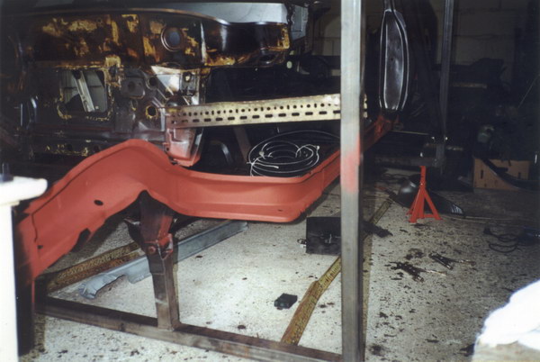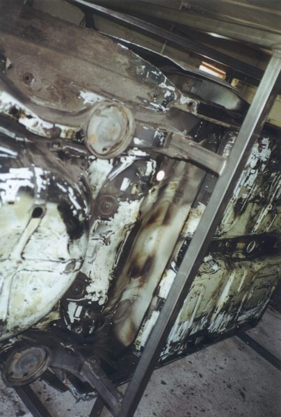 hier schon mal ein bild in die richtige richtung.... die karosse war zu dem zeitpunkt bereits komplett gestrahlt und in fertan ertränkt .... mein einziger schwerer fehler: ich dachte, ich werd schneller fertig, hab somit die karosse nicht komplett gewaschen und grundiert .....