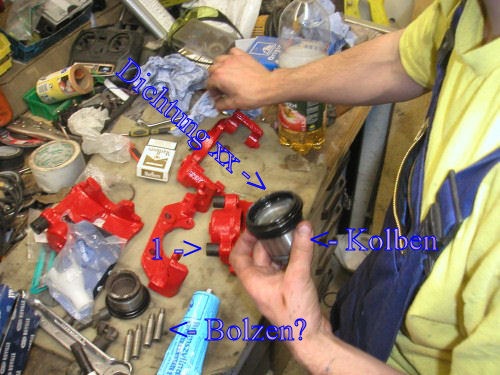 - Dichtring am Kolben bzw. Zwischen Kolben und Sattel tauschen (Dichtring xx auf dem Bild)