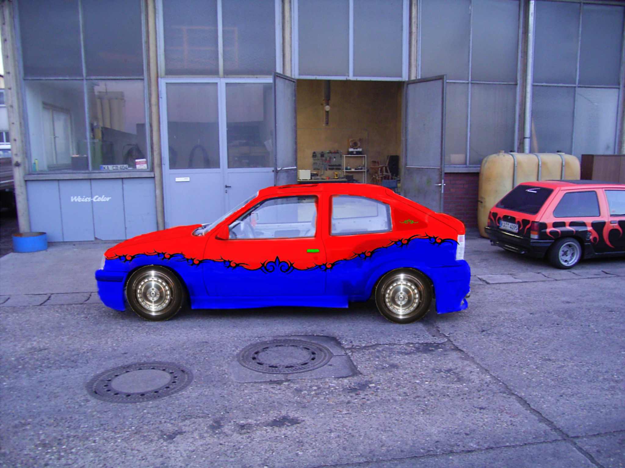 Sieht schon besser aus als das erste obwohl ich finde das dein kadett "Brutal" genug aussieht, da würde ein Farbton völlig ausreichen.