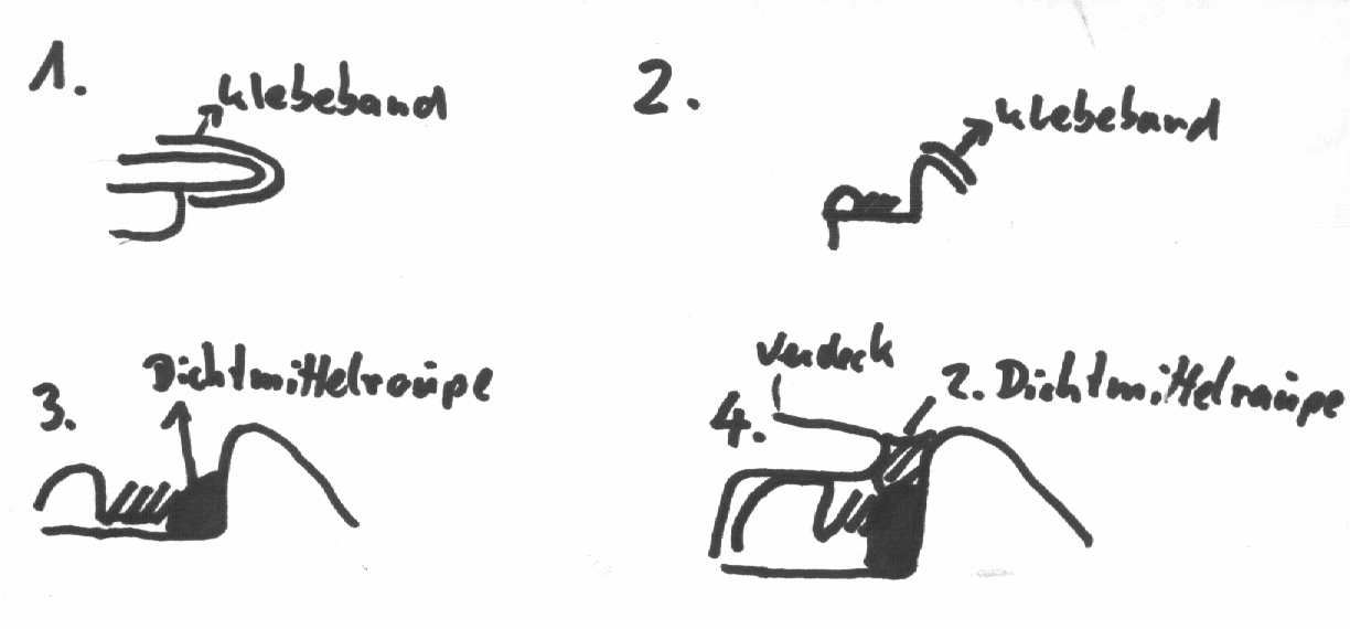 Vorne am Ecke der Türe habe ich schwarzes Silikon drauf, auf dieses Silikon eine Folie die mir Pril getränkt war und für einen Tag die Tür zugemacht und nicht mehr auf. Folie weg und dicht ist er.Hab ich auch an manchen anderen Stellen so gemacht, fällt optisch auch nicht auf.