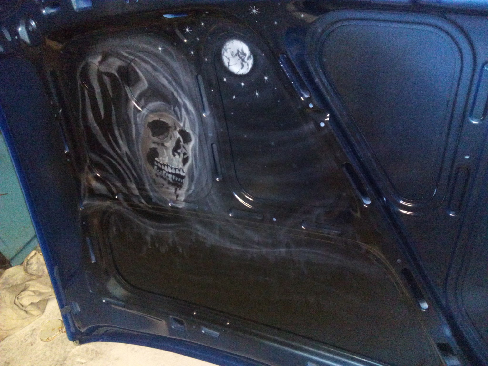 Es kommt dem alten Laserblau sehr nahe, ich freu mich rießig ihn wieder in einem Stück zu sehen. Klar, Sachen wie die Schweller, Stoßstangen usw. müssen noch gemacht werden, aber die großen Teile habe ich fertig. Nun geht's daran den Motor wieder einzubauen, neue Brems- und Spritleitungen zu ziehen, und den Unterboden nochmal Schick machen.