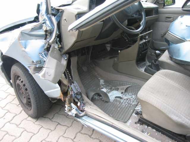 Hier sieht man schön wie die A-Säule durchtrennt und der ganze Vorderwagen weggedrückt wurde.