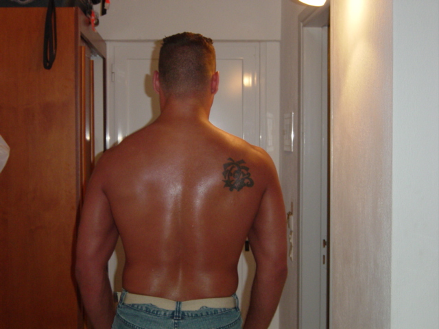 Also ich hab drei Tattoos, hab mein erstes 1994 gemacht, ebenfalls hatte ich mir 1994 die Zunge und die beiden Brustwarzen piercen lassen. Das Zungenpiercing ist noch immer drin, die beiden Brustpiercings sind mal entzündet gewesen, musste ich dann raus schmeissen. Das hier war mein zweites Tattoo
