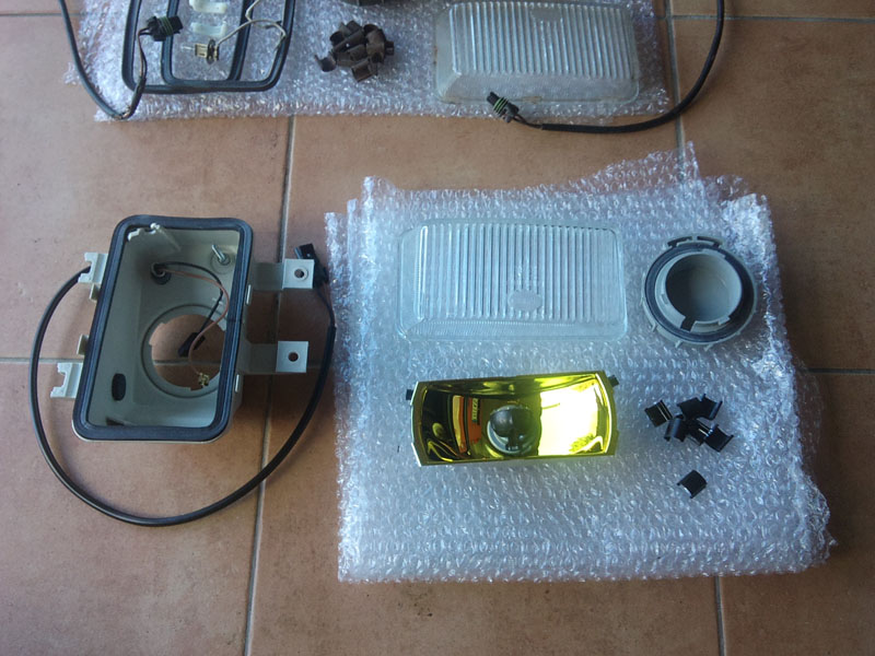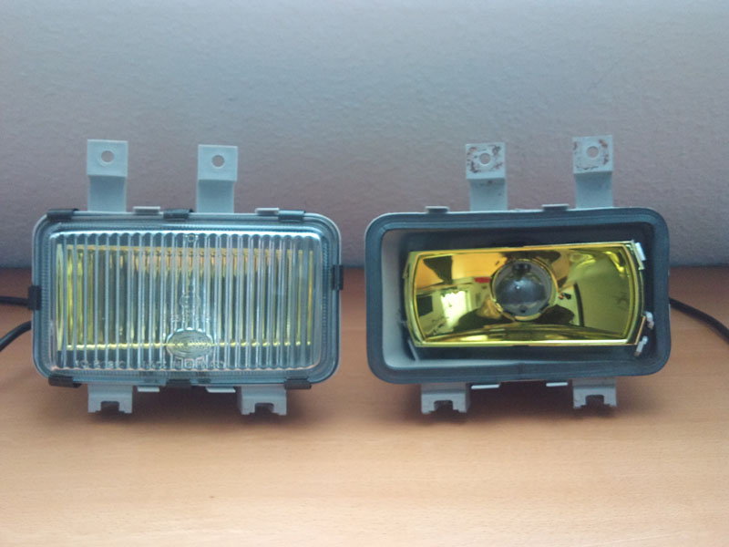 Hab gestern vom Martin ein Paar alte Nebelscheinwerfer bekommen und hab die heute gleich mal zerlegt. Grund dafür ist, dass man die linken gelben NSW nicht mehr so einfach neu bekommt, und wenn dann nur zu Abzockerpreisen. Deswegen baue ich mir jetzt aus zwei rechten gelben NSW ein Paar (links und rechts) gelbe NSW. :)