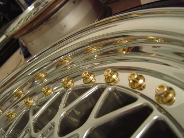 die "standardversion" mit lackiertem stern und nur polierter aussenschüssel sieht auch nach garnix aus, wie die teile beim aufarbeiten waren, sah ich die felgen an einigen autos, und dachte noch, sieht irgendwie nicht so prall aus ...aber komplett in bling bling, und vorallem dann mit den porno-gummis siehts einfach nur genial aus 8)
