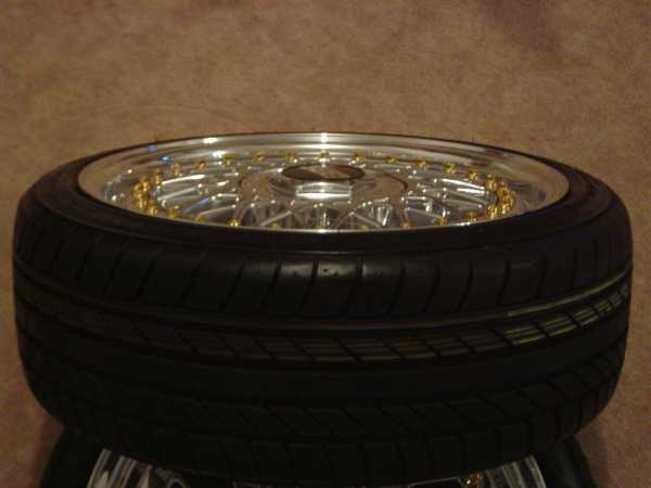 nach über 2 1/2 jahren hat die odyssee endlich ein ende. nach reichlich stress mit einer kleinen firma in hagen, nem aufenthalt in der felgenklinik, einer überarbeitung der aussenschüsseln, einer verbreiterung der hinteren felgen (danke nochmal an micha ;) ) und ner extra-anfertigung der versenkten ventile für die schmalen felgen der vorderachse wurde die BBS heute endlich mit den "porno-ringen" gummiert.