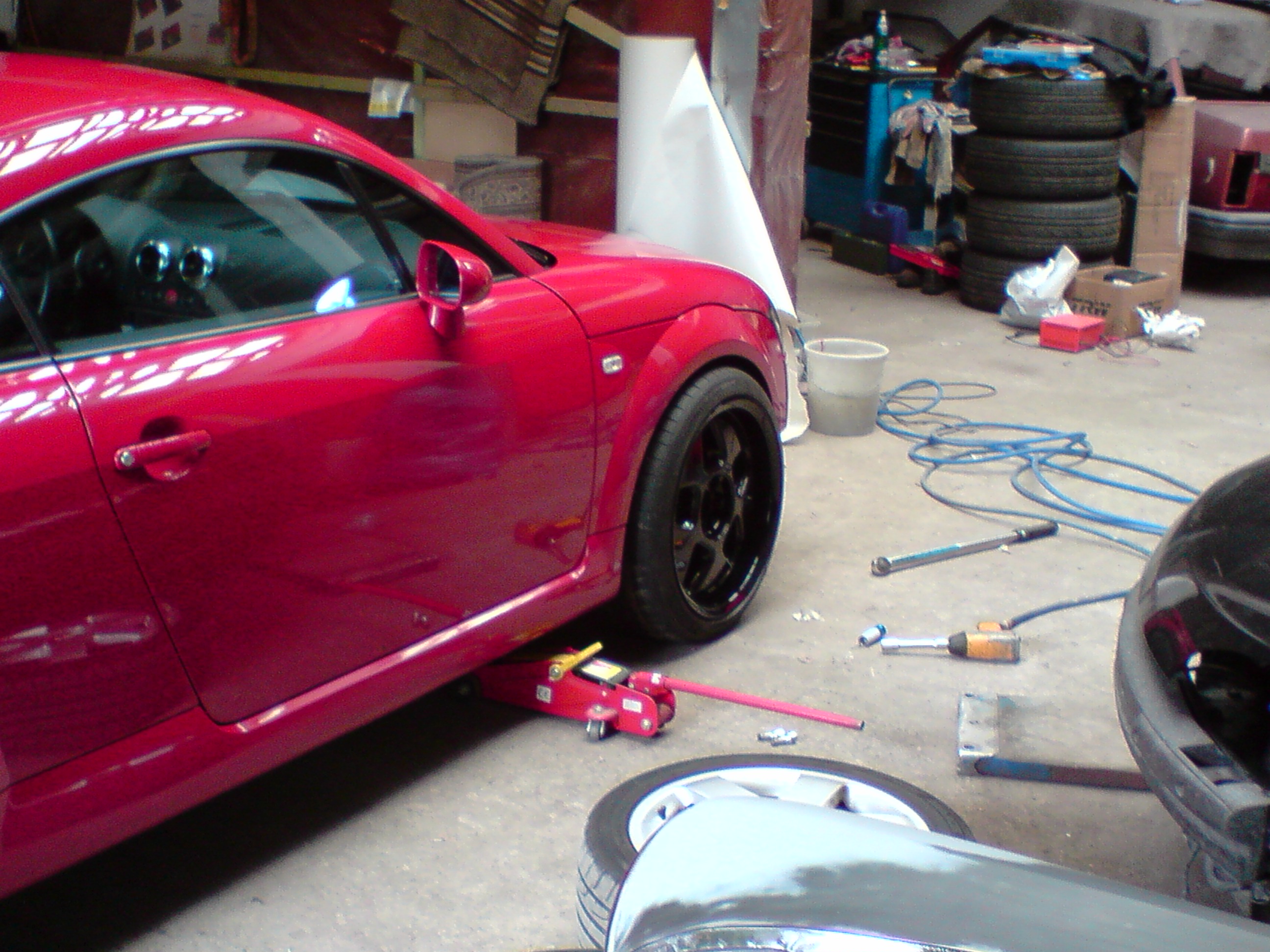 #362 Jetzt steht das schöne Wetter vor der Tür und der Rene hat immer noch keine Felgen für den TT, die KT5 wurden leider im Netz falsch beschrieben, zum einen stimmte der Lochkreis nicht, zum anderen stimmten auch die ET`s nicht, ich hab leider auch nicht nachgesehen, jetzt waren die Räder vorgestern beim Lackierer, Reifen besorgt, Adapter besorgt, und dann steht der ganze Mist über, aber die Optik ansich hat mir sehr gut gefallen zum rot