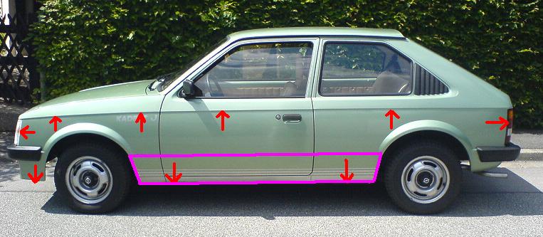 Ich meinte die Delle im Kotflügel. Da sollte sich die Reparatur im Bereich der Streifen halten lassen, dann braucht man keinen KadettJ Aufkleber. Bei der Tür ist das ja anders, aber da braucht man auch keinen KadettJ Aufkleber für. Nur halt das Streifendekor.