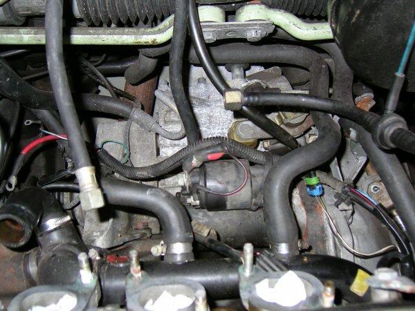 Auf dem Bild sind die beiden Schläuche (weis und gelb)die in den Heizungskühler gehen. Das ergibt, nach meinem logischen denken, keinen Sinn. Muß nicht der Schlauch (blau) der aus dem Zylinderkopf geht mit dem Heizungskühler verbunden werden?