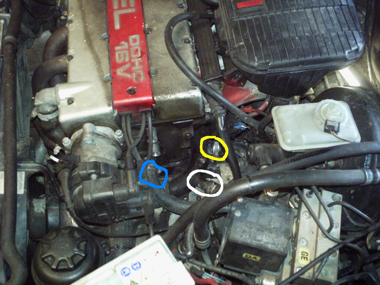 #4 Hatte das Schlauchtauto vielleicht kein ABS - so daß an der Stelle, wo der ABS-Block sitzt der Ausgleichsbehälter war ? Mein Calibra hat ein anderes Plasikverteilerrohr - ein Anschluß in der Gegend weniger. Der weisse Anschluß würd ich meinen, würd an den Ausgleichsbehälter gehören (wenn da einer wäre). Blau und Gelb dann Heizung. Das Bild ist vom Calibra - von links nach rechts : Ausgleichsbehälter, Heizung und Heizung (sieht man nicht mehr ganz).