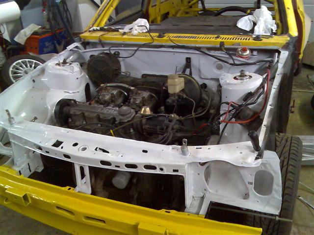 So der Motorraum is soweit auch fertig noch bissle elektrokram und den Kühler befestigen da baue ich mir dann an der arbeit was.