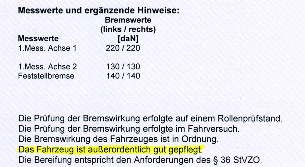 Im TÜV-Bericht machte der Prüfer eine Bemerkung über den Zustand des Fahrzeugs,