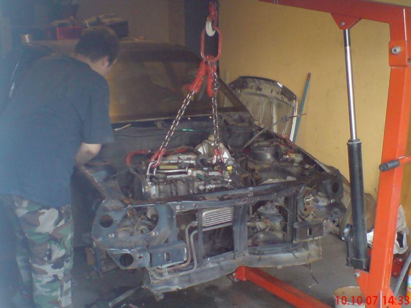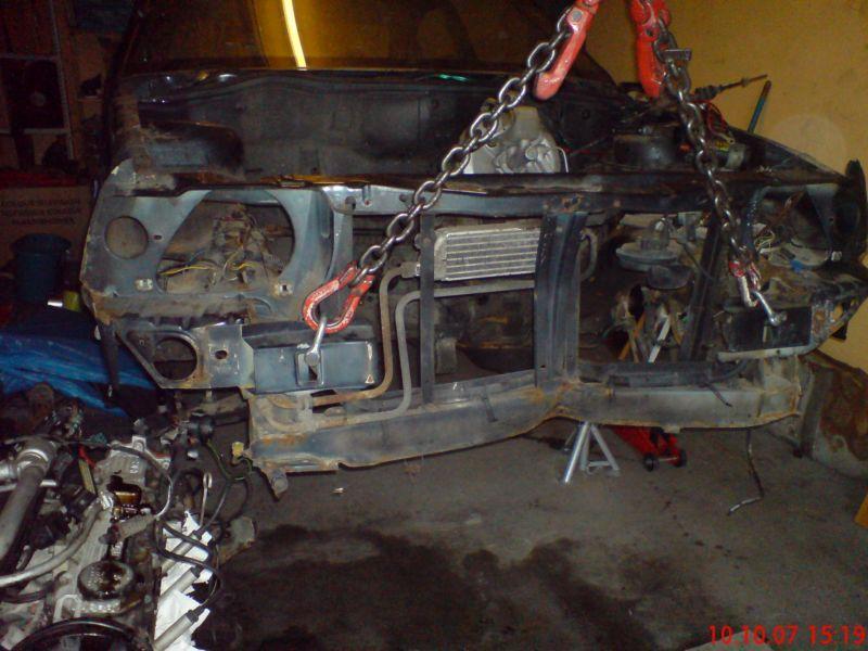 Das einzigste was Du an Werkzeug brauchst ist ein gut sortierter Knarrenkasten, wenn Du hast nen Schlagschrauber, nen guten Satz Ring/Maulschlüssel, die Nüsse für die Antriebswellen und Bremssättel, nen Schlüssel für die Bremleitungen nen Motorkran bzw. Flaschenzug und am Besten ne Hebebühne. Geht aber auch, wenn Du das Auto auf Böcke stellst.