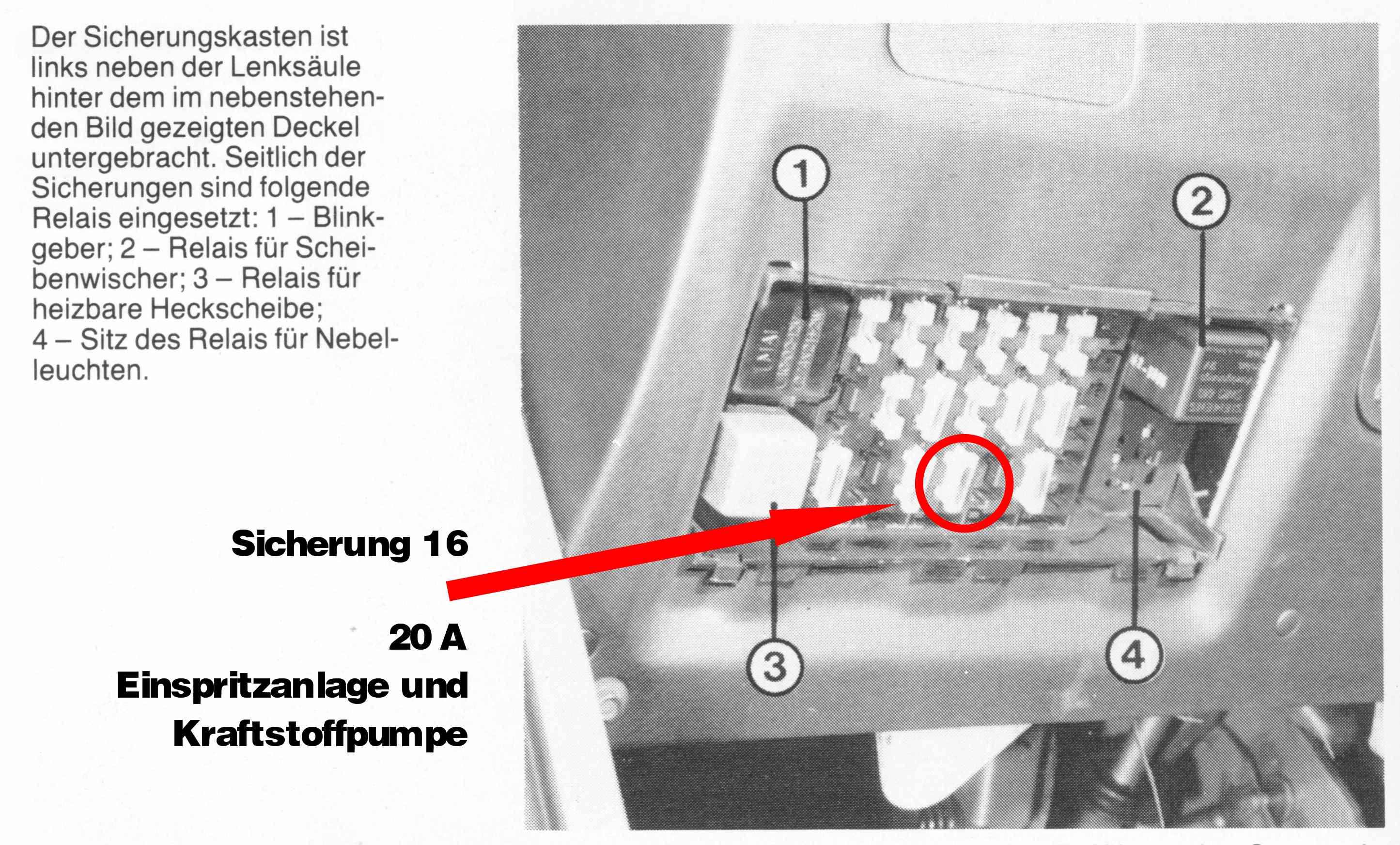 Diese Sicherung ist für die Einspritzanlage und Kraftstoffpumpe. (siehe Abbildung)