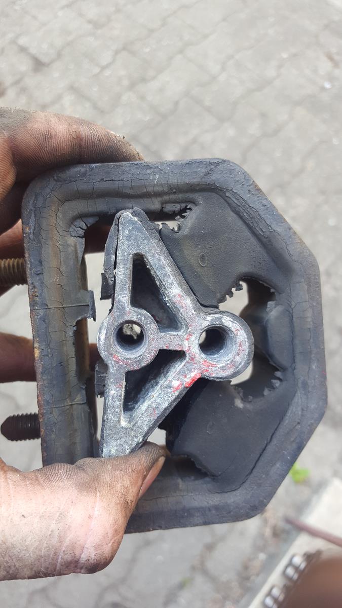 mit dazu gabs dann noch ein neues gummilager (lemförder) beifahrerseite vorn für den motor, da das alte wie man sieht, am lebensende war.