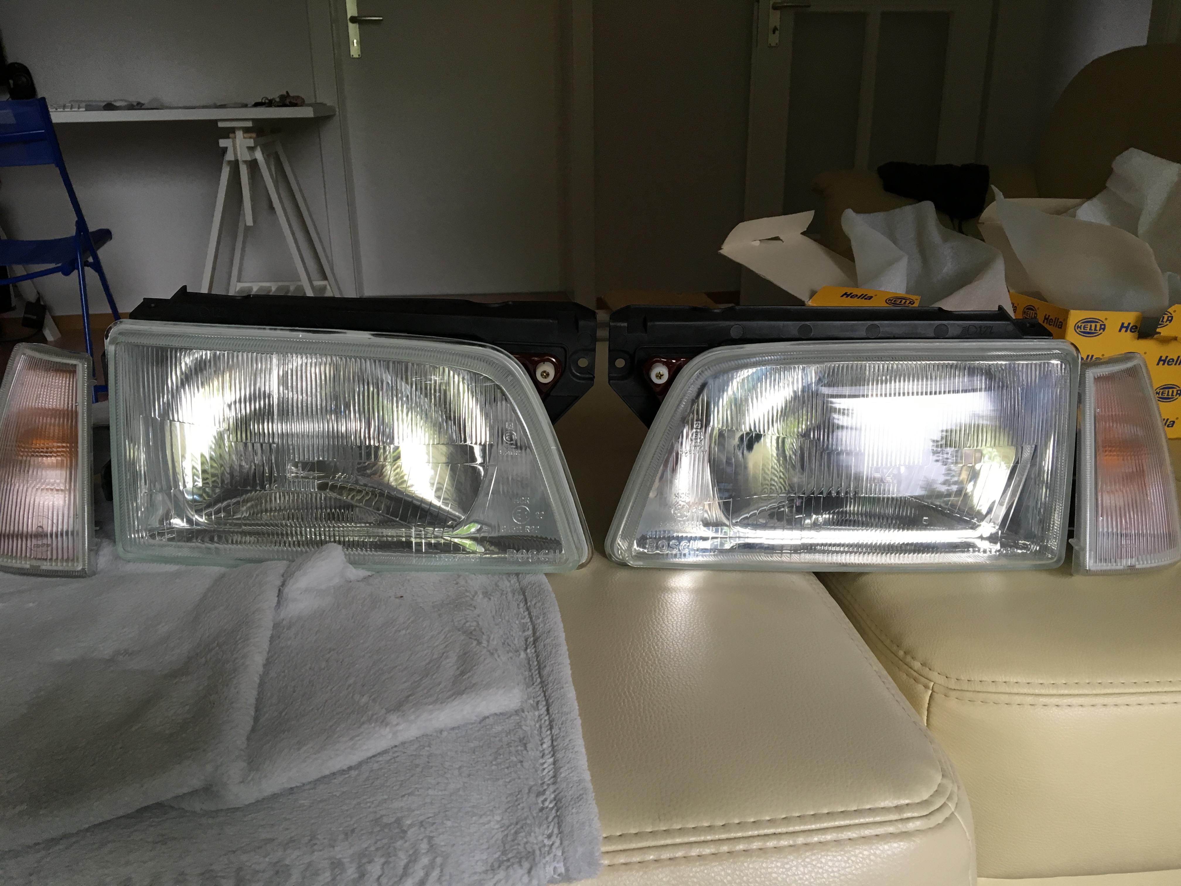 Hab mich mal auf die Suche nach einem Paar neuen Bosch-Scheinwerfern und einem Satz neuer Blinker begeben. Zum Glück gibt es ja Ebay und Facebook :thumbup: