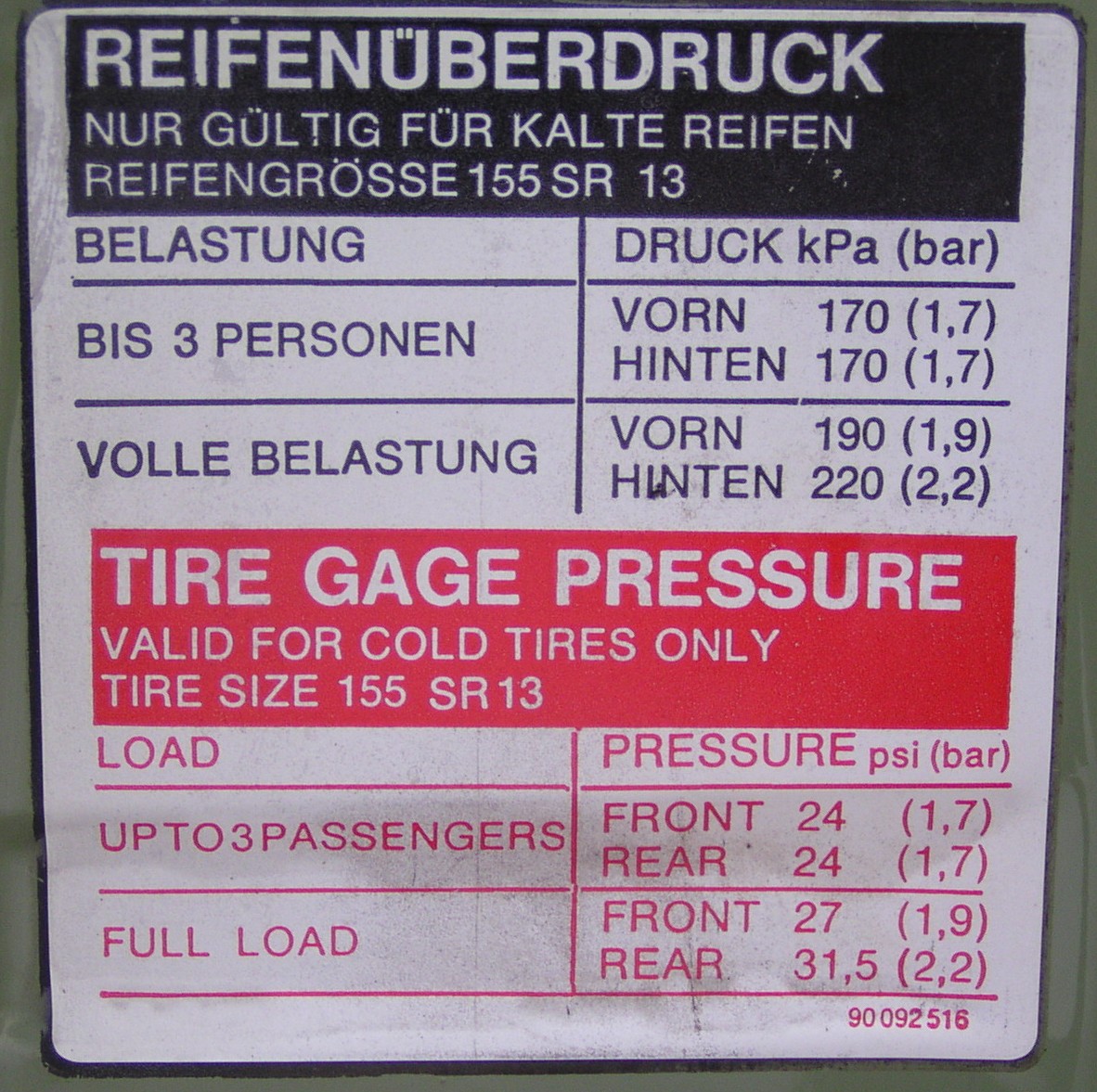 mit einem Freund zusammen plane ich die Nachfertigung von den Reifendruckaufklebern. Da diese sich auf Innenseite der Fahrertür befinden, befinden sie sich meist in einem schlechten Zustand oder sind nach einer Restaurierung bzw. Komplettlackierung überhaupt nicht mehr vorhanden. ![]()