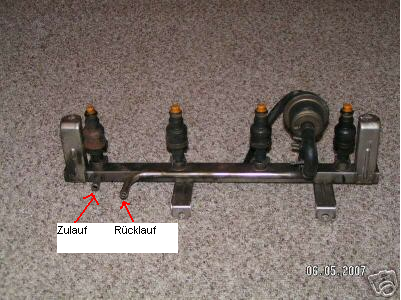 Kann man auch gut daran erkennen,dass dieser Anschluß unter dem Sammelrohr lang läuft und von unten mittels eines kleines Schlauches an den Druckregler geht.Hab mal bei ebay ein Bild gefunden, zeigt das Ding von unten: