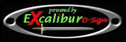 Enthalten sein sollen mein gift-grüner Excalibur-Schriftzug mit einen etwas größeren roten X, eben so das rote D-Sign (in Schreibschrift), alles Kursiv.