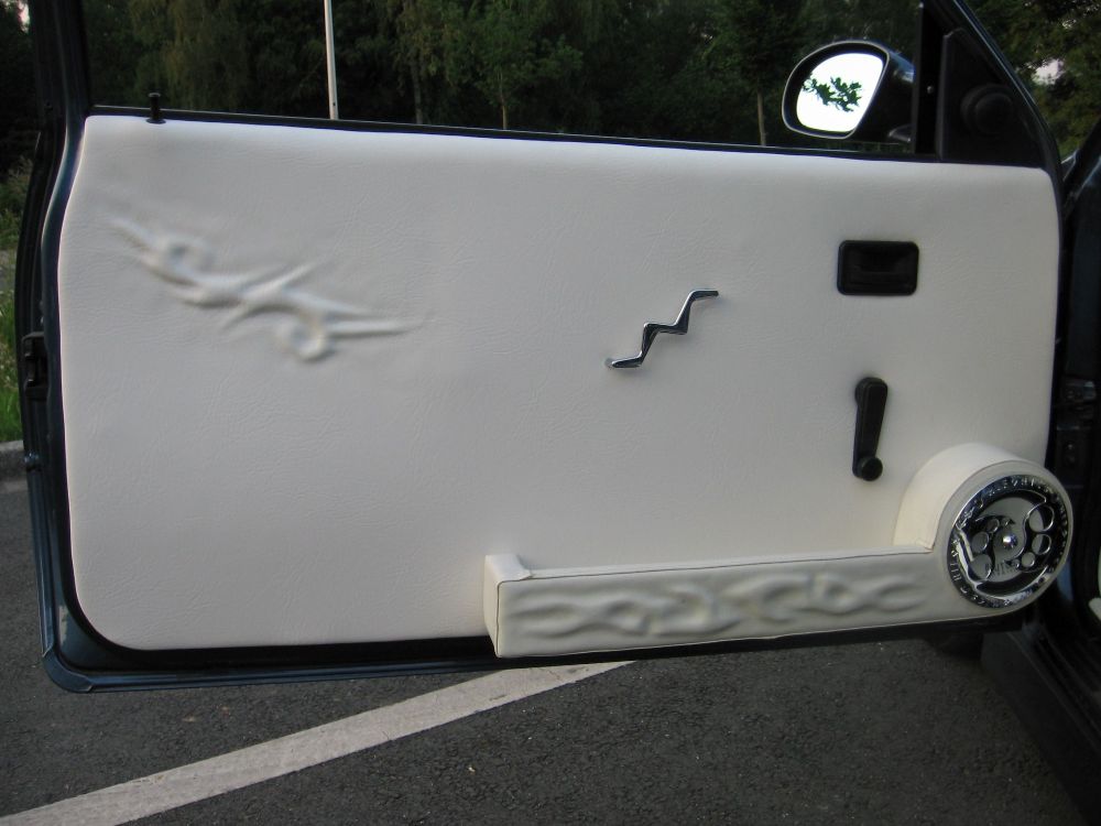 #7 Ich würd das Tribal auch ausschneiden (aus festen Schaumstoff oder Sperrholz), aufkleben und mit Kunststoff beziehen. Wegen dem Kleber würd ich aber zum Sattler fahren und was Gutes und Hitzebeständiges besorgen - nicht daß die Konturen im nächsten Sommer verschwinden, weil der Kleber nicht richtig hält.