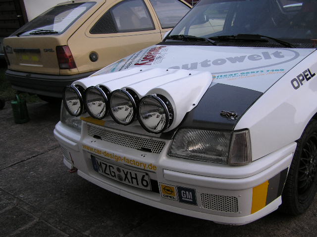 Das Nachtgesicht ist kompletter Eigenbau(bis auf die Scheinwerfer mit je 130Watt Birnen;) ) und ist natürlich für den Motorsport.Allerdings sind die so auf der Haube befestigt das sie nicht über die Stoßstange hinaus.Allerdings kommen dann Deckel drauf damit die Rennleitung nix zu maulen hat.