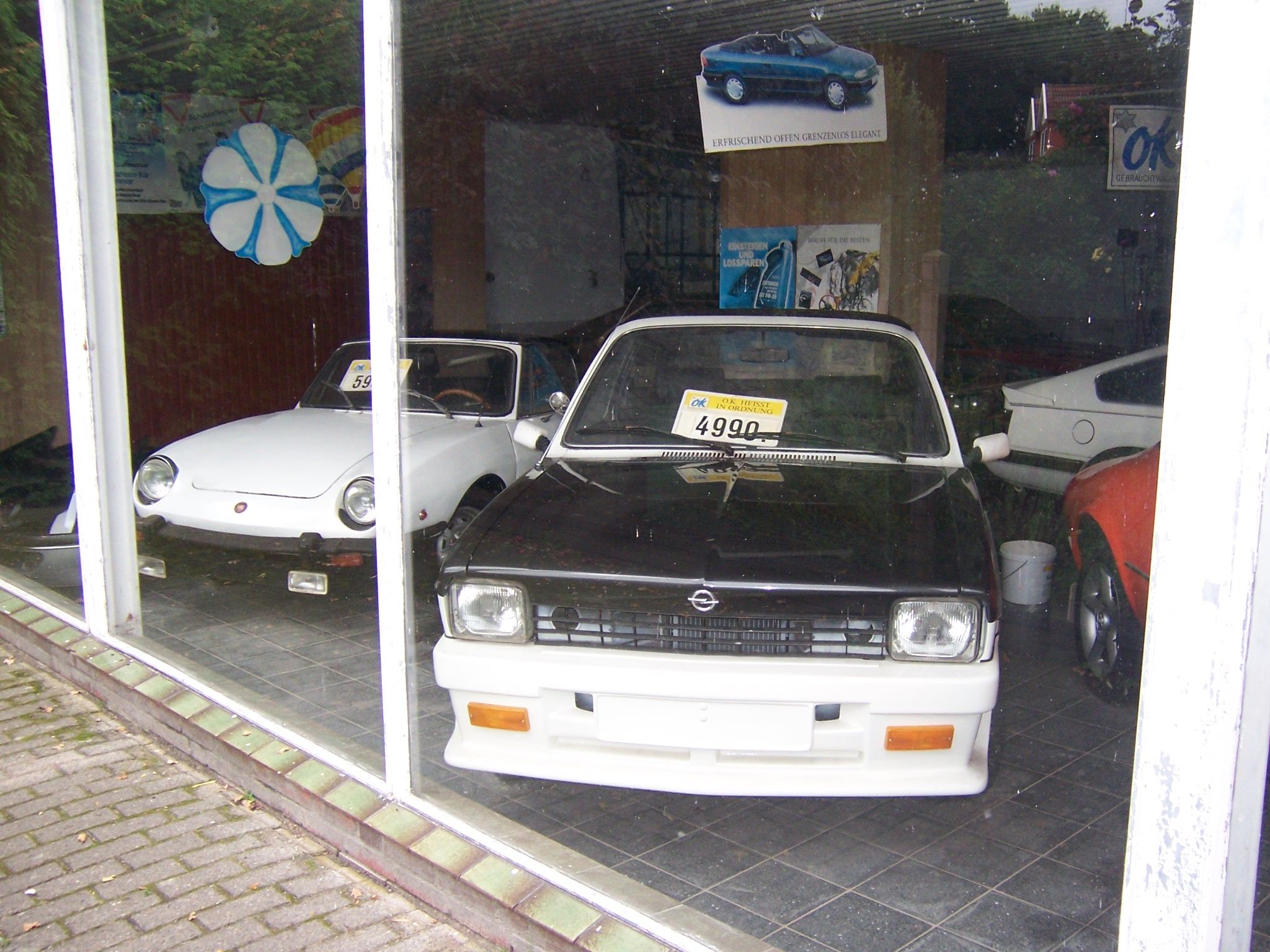 So bin endlich mal dazu gekommen Foto´s bei einem ehemaligen Opel Händler bei mir im der Nähe zu machen einige dieser Autos stehen da seit 15 Jahren rum er verkauf auch nicht an jedern nur an Leute die versprechen die Autos gut behandeln besonders die beiden Aero´s will er ungern Verkaufen die Preise sind noch die DM preise die er aber um Teil 1zu1 umrechnet in seiner Werkstatt sind auch noch einige alte Ersatzteile