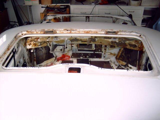 Bereits 1990 war der linke Schweller durchgerostet. Der Wasserablauf des originalen Vario-Glashubdaches endete im unteren Drittel der A-Säule...