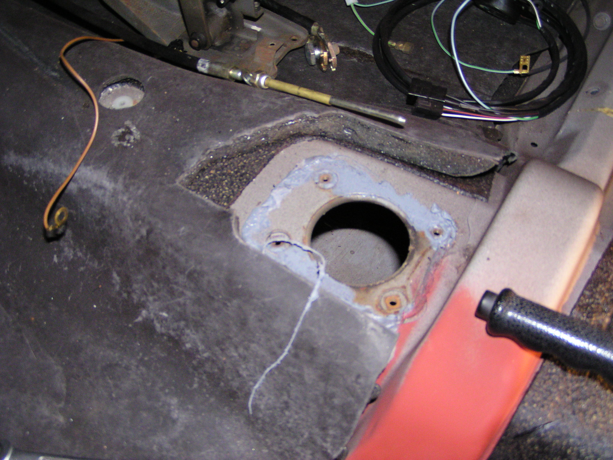 Hab ihn nochmal gefragt, er meinte auf das Loch wäre direkt der Wählhebel geschraubt, dessen Fuß auch als Abdeckplatte für das Loch diente. Zusätzlich war der dann noch mit Karosserie-Dichtmasse aufgeklebt.