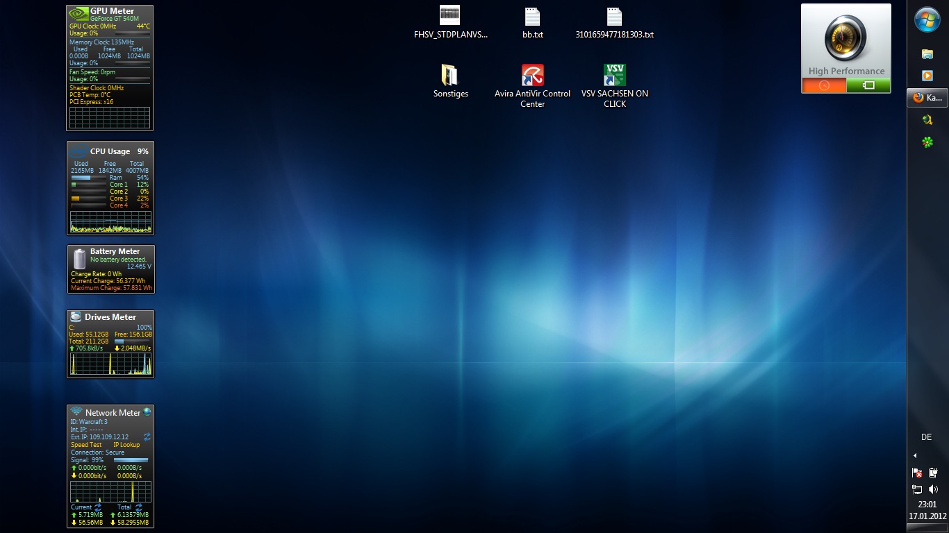 Workstation/Server: Intel Core i3 2100,8GB Ram, 60GB SSD + 10TB Raid 5 , GTX460 an 2 Dell Ultrasharp 1707FP