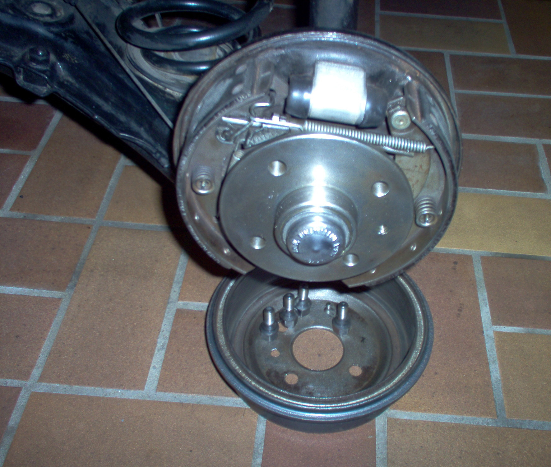 zum die Trommel ist runter und ich seh die Bremsanlage in Ihrer komplexen Form -