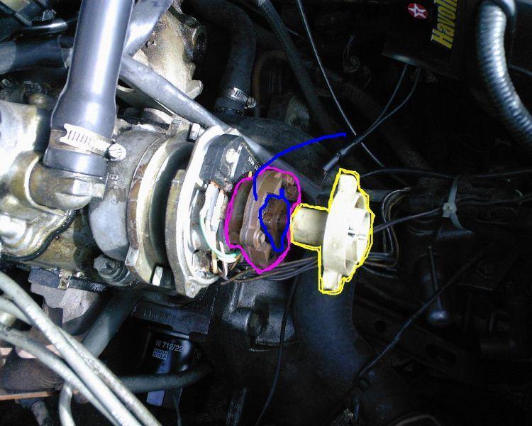 Schraube doch einmal die Verteilerkappe ab und schaue nach, ob der Hallgeber Spiel hat, dieser sollte fest sitzen und sich nicht hin und her drehen lassen.